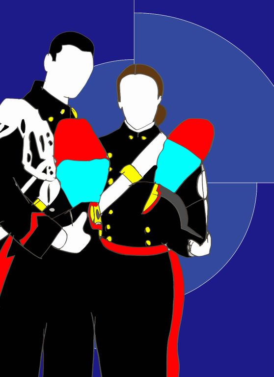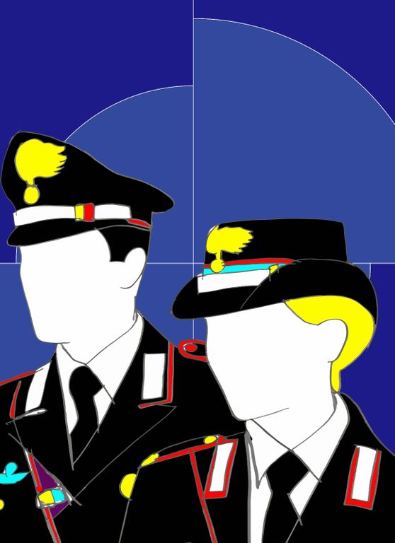 Le tavole, invece, raffigurano, nell’inconfondibile stile pop di Marco Lodola, carabinieri delle varie articolazioni dell’arma e figure giovanili, nella versione cartacea delle “sculture luminose” che lo hanno reso celebre nel mondo.