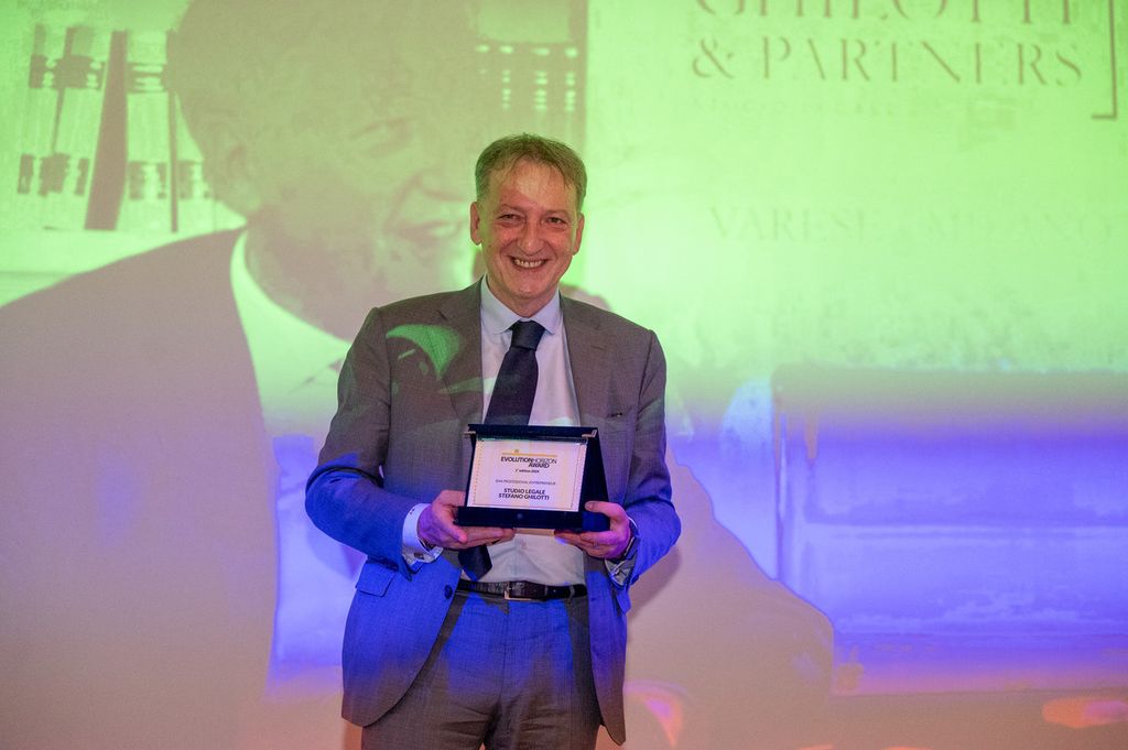 Massimo Senini, vincitore assoluto della prima Edizione dell’Evolution Horizon Award, con la moglie Franca, il figlio Riccardo e alcuni collaboratori