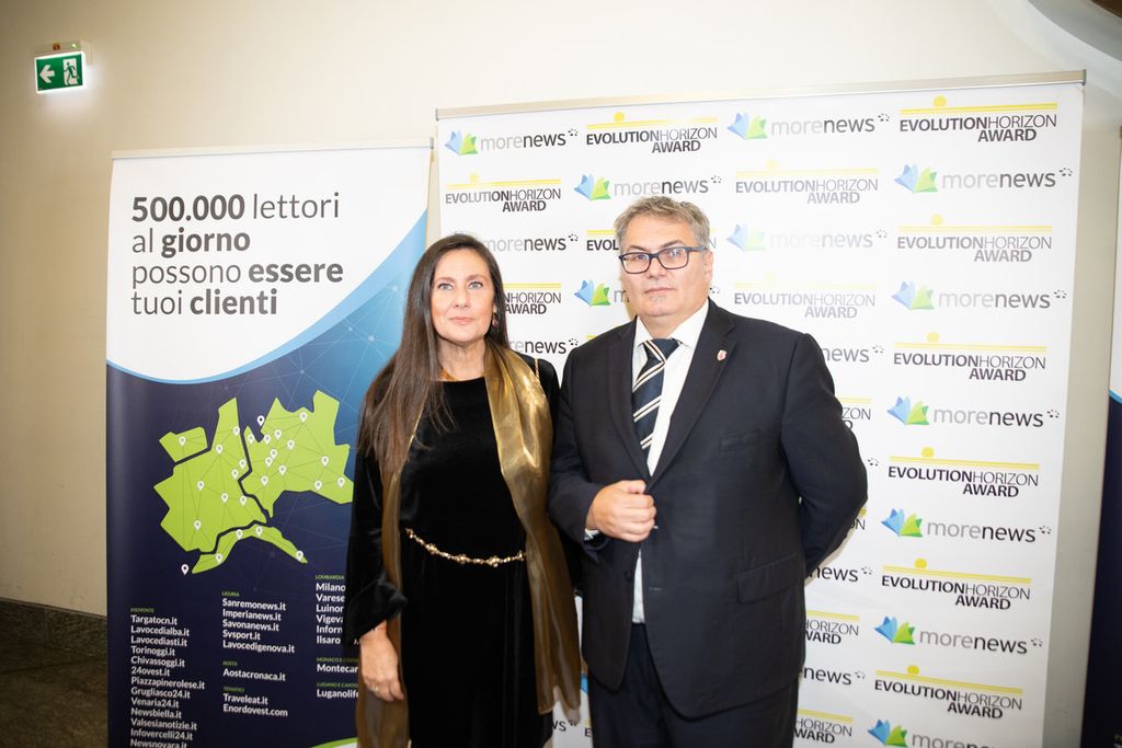 Chiara Osnago Gadda, event manager del premio Evolution Horizon Award con l'editore di More News, Enrico Anghilante