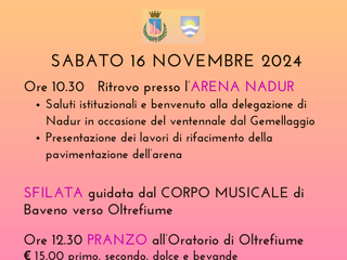 Sabato 16 novembre 2024, Baveno celebra il ventennale del gemellaggio con Nadur, una cittadina di Malta, con una giornata ricca di eventi che coinvolgeranno la comunità locale e la delegazione maltese. I festeggiamenti prenderanno il via alle 10:30 presso l’Arena Nadur, sul lungolago di Baveno, con i saluti istituzionali e il benvenuto ufficiale alla delegazione di Nadur, giunta per celebrare questa importante ricorrenza.