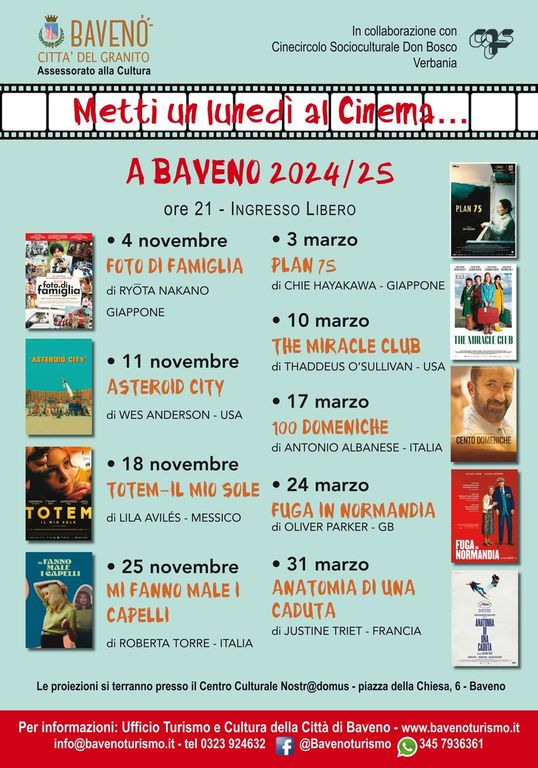 L’ingresso alla proiezione è libero e gratuito, e l’evento è organizzato dall’Assessorato alla Cultura della Città di Baveno, in collaborazione con il Cinecircolo Socioculturale Don Bosco di Verbania.