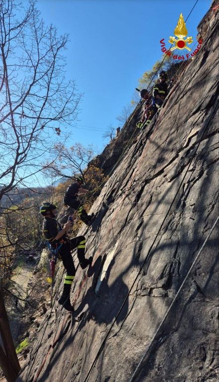 I vigili del fuoco del comando di Verbania hanno organizzato negli scorsi giorni delle giornate addestrative, in ambito provinciale, finalizzate al mantenimento di competenze tecniche per il soccorso tecnico urgente e per le quali sono richieste capacità ad alto contenuto specialistico. Nel comune di Omegna in località Bagnella, in una falesia attrezzata per l’arrampicata sportiva, si è simulato il soccorso di uno scalatore in difficoltà in parete, il recupero e la messa in sicurezza dello stesso per poi consentire di affidarlo a personale sanitario. Nella stessa giornata i vigili del fuoco hanno simulato uno scenario in cui una persona caduta accidentalmente in un luogo impervio, scelto per la complicata accessibilità, veniva stabilizzata e recuperata con tecniche Saf (Speleo Alpino Fluviali).
