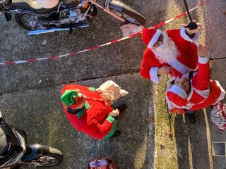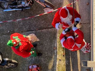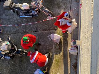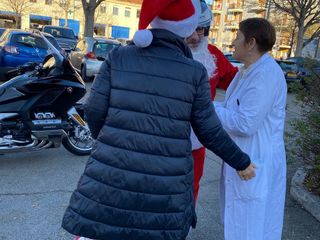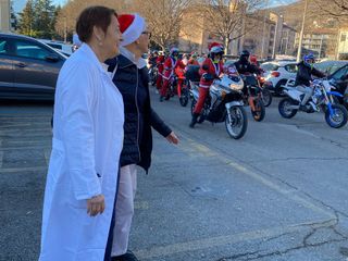 I Babbi Natale del Motoclub Verbania 2.0. sono arrivati, alle 15.00p come promesso, sotto le finestre del reparto di Pediatria del Castelli con i sacchi pieni di doni per i piccoli pazienti. Insolita la modalità di consegna. I sacchi sono stati recapitati via fune, dal personale del reparto e dai volontari di Abio (associazione bambini in ospedale).