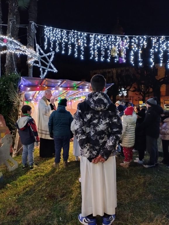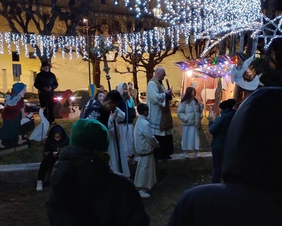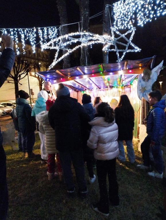 Nutrita partecipazione, dei bambini e ragazzi dell'oratorio Don Bosco, alla Marcia delle Lanterne, da piazza Giovanni XXIII alla collegiata San Leonardo per assistere alla messa della Vigilia. Alle 22.15 la partenza dal presepe dell'associazione difesa tradizioni Piazza Villa. Molti i parrocchiani adulti al seguito. Dopo l'ingresso dei fedeli, i volontari di Piazza Villa si sono messi al lavoro per scaldare vin brulé, cioccolata ed affettare panettoni e pandori per il tradizionale scambio d'auguri a fine messa.