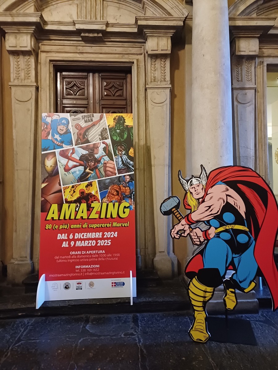 A Torino, in Via delle Orfane, presso Palazzo Falletti di Barolo, è possibile visitare una mostra intitolata “Amazing. 80 (e più) anni di supereroi Marvel”. E’ organizzata da Ares Torino con il patrocinio della Città Metropolitana ed è curata da Luca Bertuzzi. E’ stata inaugurata il 6 dicembre scorso e proseguirà fino al prossimo 9 marzo.