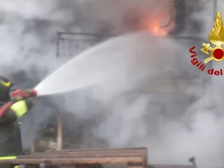 L'incendio aveva già interessato il primo piano con fuoriuscita di fiamme dal balcone, coinvolgendo arredi e materiali vari sia all'esterno che all'interno dei locali ad uso abitativo. Anche un vano ubicato sotto il balcone, contenente materiale combustibile, è stato interessato dall'incendio.
