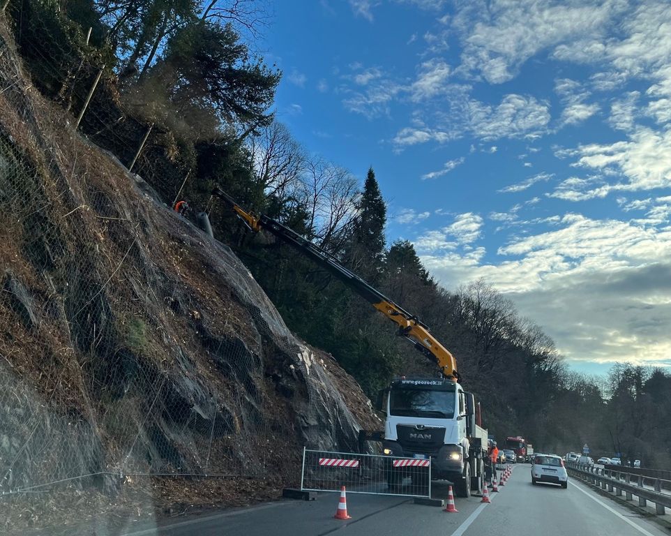 Lunghe code e disagi. Sono partiti lunedì 20 gennaio e proseguiranno, salvo novità, per diverse settimane i lavori per la sistemazione delle nuove reti paramassi (nella foto) sul versante a monte della trafficata statale 34 del lago Maggiore. Si tratta di lavori non semplici, che comportano anche il fatto che gli operai (specializzati) operino in parete. Nel tratto di strada compreso tra gli abitati di Fondotoce e Suna è previsto dunque il senso unico alternato di marcia dalle 8.45 alle 17.00, anche nelle ore di punta di entrata e uscita dal lavoro.