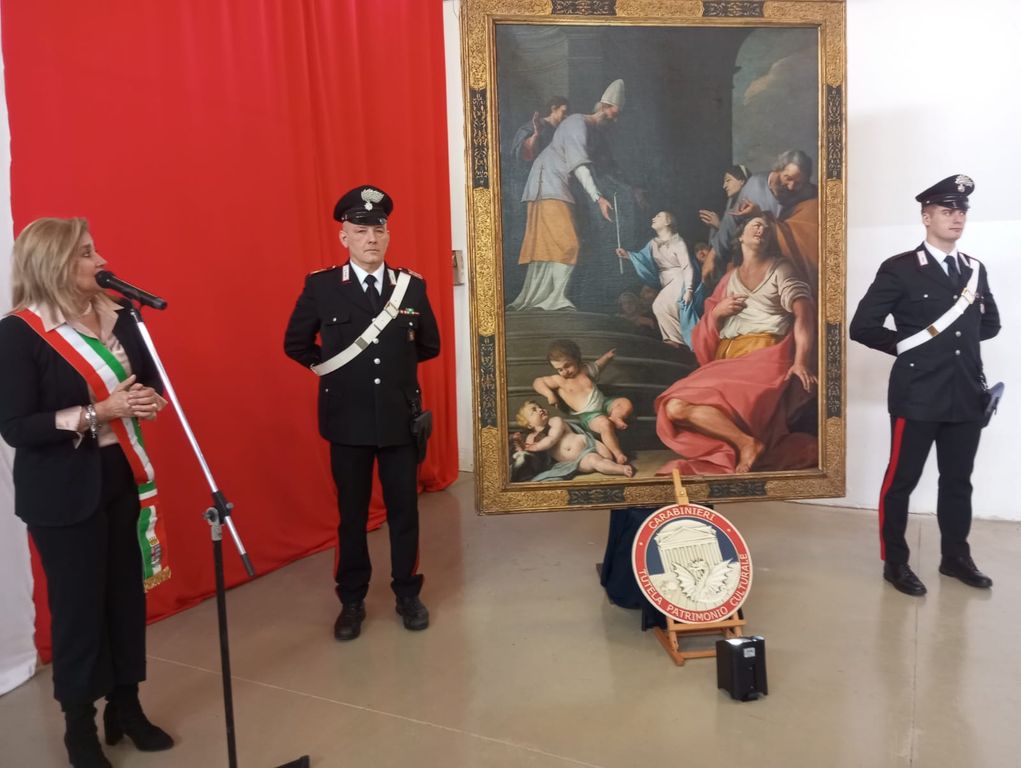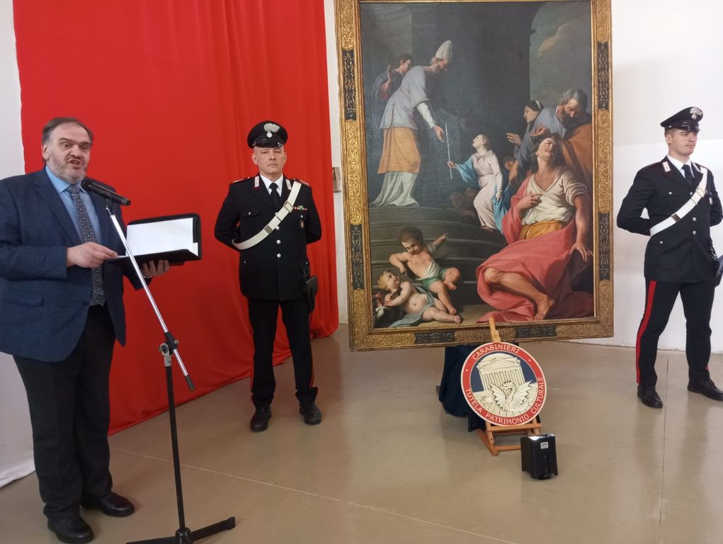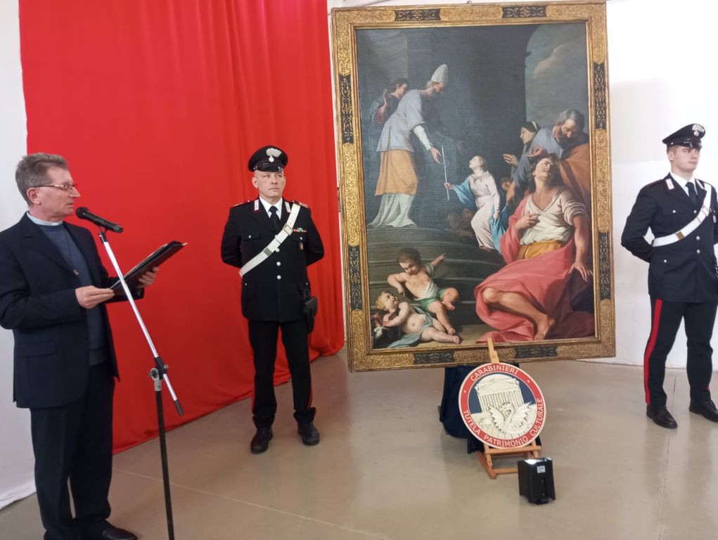 Il vicario generale della diocesi monsignor Fausto Cossalter, il direttore dell’ufficio patrimonio culturale Paolo Mira, il sindaco Marcella Severino e don Villa hanno ringraziato le forze dell’ordine per il prezioso recupero.