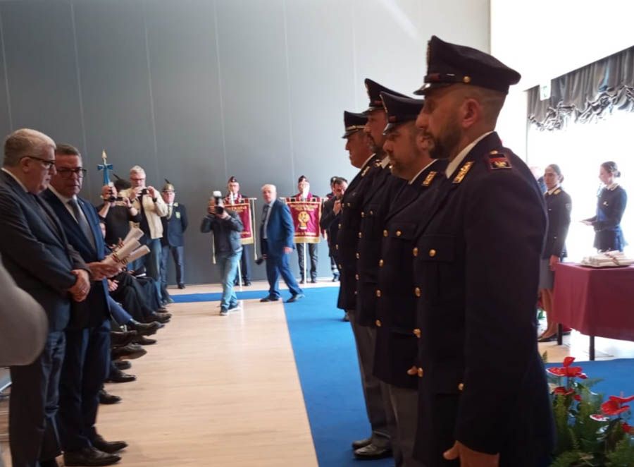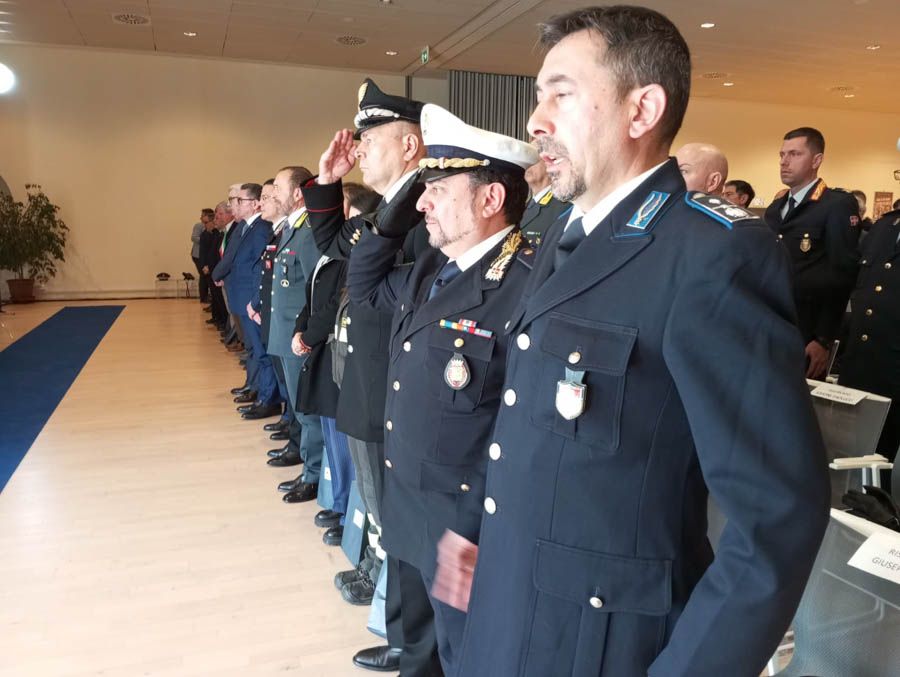 Alla cerimonia erano presenti le autorità civili e militari: Carabinieri, Guardia di Finanza, Polizia Penitenziaria, Polizia Locale, insieme a una nutrita rappresentanza della Procura della Repubblica con il procuratore capo Alessandro Fefè e i sostituti Fabrizio Argentieri, Luca Periani e Sveva De Liguoro, che hanno consegnato riconoscimenti a funzionari e agenti distintisi in operazioni di servizio.
