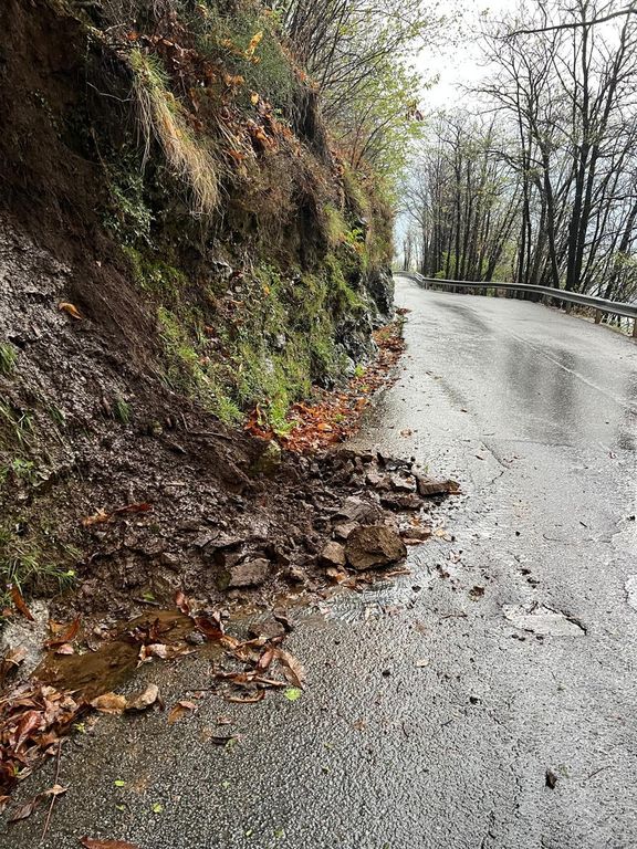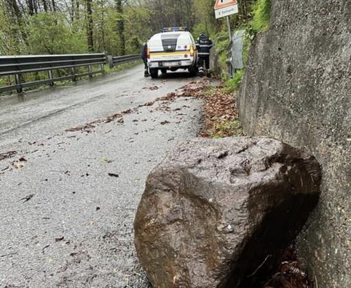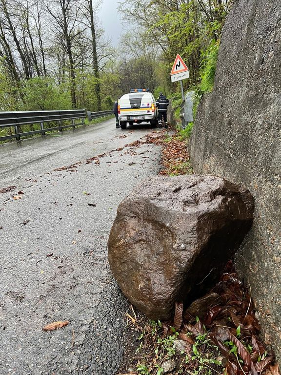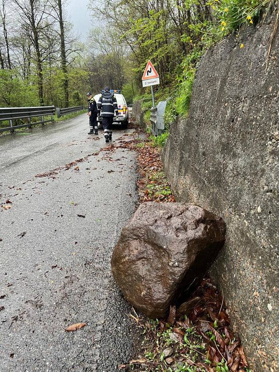 Primi effetti del maltempo. Un masso di grosse dimensioni e’ piombato sulla strada provinciale 51 delle Quarne, per fortuna senza conseguenze per gli automobilisti Sul posto i volontari della Protezione Civile.
