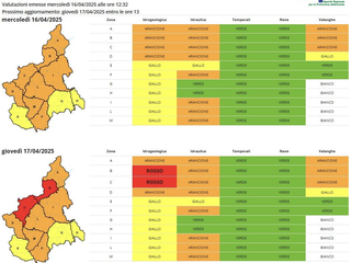 In considerazione dell’ulteriore peggioramento delle condizioni meteorologiche e degli impatti conseguenti attesi sul territorio, il Centro funzionale di Arpa Piemonte ha emesso un’allerta Rossa per rischio idrogeologico domanisulle vallate piemontesi nordoccidentali (zone B e C) e Arancione già da oggi su gran parte del Piemonte per possibili esondazioni dei corsi d'acqua e fenomeni di versante estesi. Allerta Arancione anche per possibili valanghe sulle Alpi dalle Cozie alle Lepontine (zone A,B e C).