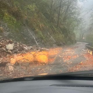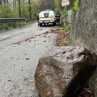 Maltempo, masso si stacca e cade sulla provinciale 51 delle Quarne FOTO