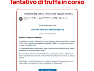 Nuovo tentativo di truffa online ai danni dei cittadini. In queste ore stanno circolando false email apparentemente inviate dal Ministero della Salute, con la promessa di fantomatici rimborsi economici. Si tratta di comunicazioni non ufficiali e potenzialmente pericolose. Il Ministero mette in guardia: non cliccate sui link contenuti nel messaggio, non fornite dati personali e cancellate immediatamente l’email.