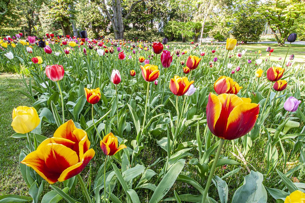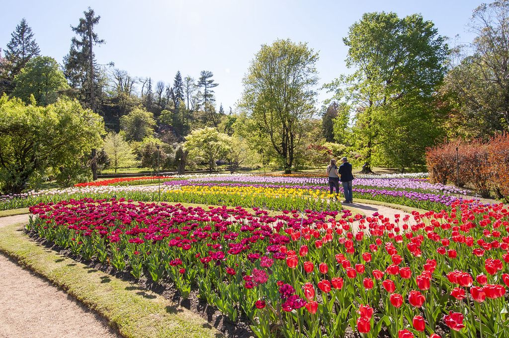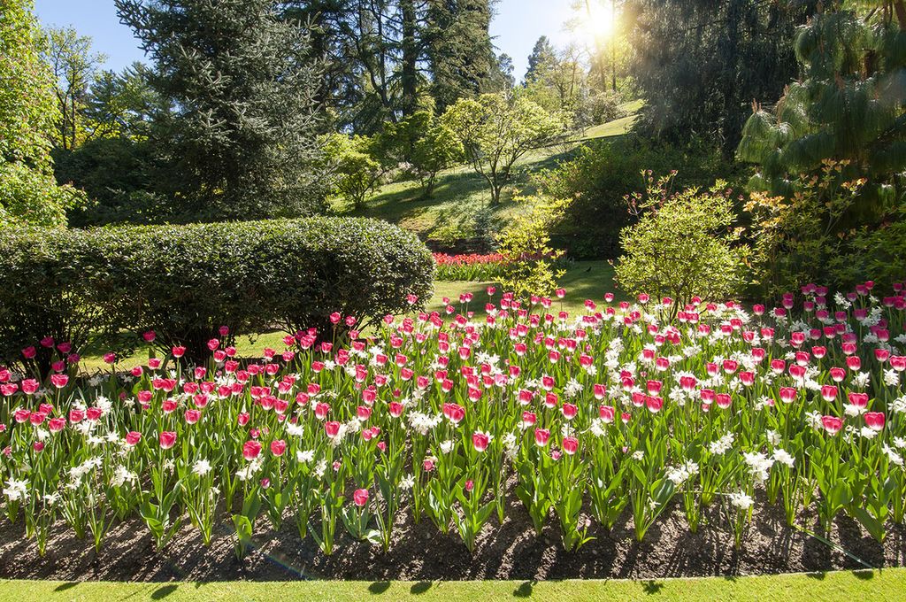 Oltre centomila fioriture a stagione, per un elemento vivo che cambia continuamente. ll viale delle felci, una perla, con esemplari di quasi cent’anni arrivati dall’Australia. Circa 40mila bulbi piantati e un’ottantina di specie. 200metri quadri di rose. Mille metri quadri di prati fioriti, distribuiti in tre parti differenti del parco.
