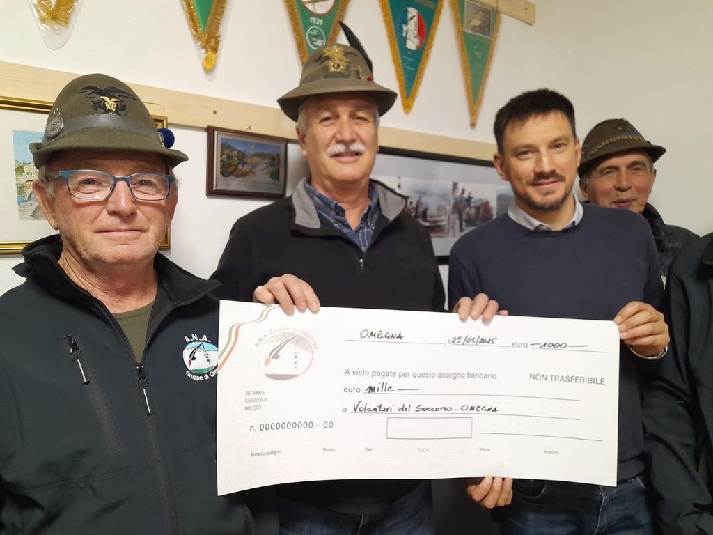 Dal Gruppo Alpini di Omegna una donazione di 1000 euro ai Volontari del Soccorso. La consegna ufficiale dell'assegno nei giorni scorsi.