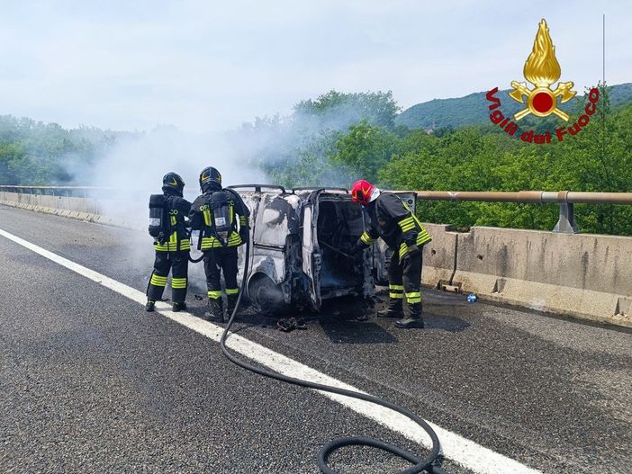 Nella tarda mattinata di oggi, intorno alle 12:30, una squadra dei Vigili del Fuoco del distaccamento di Arona è intervenuta sull'autostrada A26, in direzione Milano, per un incendio che ha coinvolto un furgone nei pressi dell’uscita di Meina.