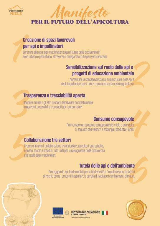 Maggiori informazioni sul Manifesto per il Futuro dell’Apicoltura: https://www.piemontemiele.com/essere-apicoltore/manifesto-per-il-futuro-dellapicoltura/