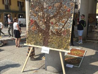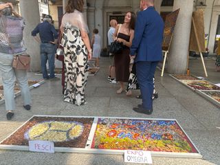 Grande successo per la prima edizione dell'Infiorata Omegnese. Sotto i portici del municipio, tanti curiosi, residenti e turisti, hanno osservato da vicino le creazioni del gruppo di donne che, sotto la guida di Gianni Alberganti, hanno realizzato dei veri e propri capolavori con i fiori secchi inseriti in speciali pannelli.