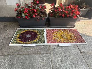 Il tutto rigorosamente fatto a mano negli ultimi mesi. "Siamo felici e soddisfatte delle nostre creazioni: noi api operaie, cosi ci chiama Gianni- ha evidenziato in rappresentanza delle volontarie Renata Pasini - abbiamo lavorato in gruppo e crediamo che il risultato finale sia apprezzabile. Questa infiorata speriamo sia la prima di una serie di future edizioni".