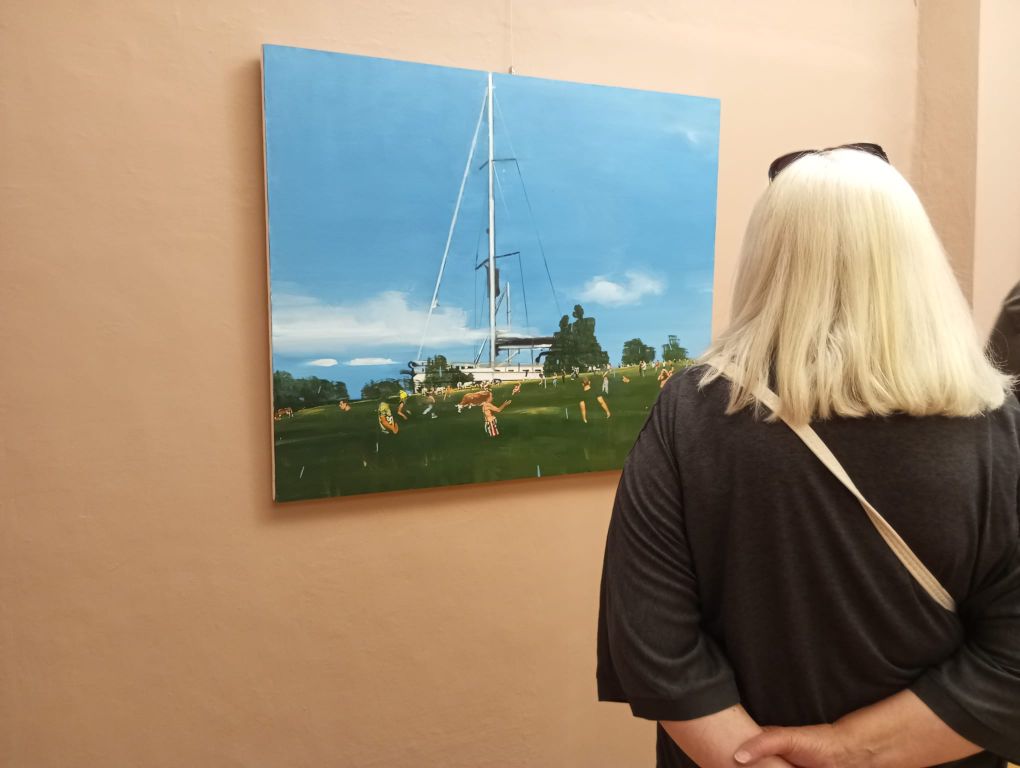“Quattro artisti attivi in Piemonte – spiega il curatore, Guido Curto – hanno scelto come soggetto d’ispirazione poetica gli elementi primigeni della natura e del paesaggio nel contesto naturalistico e paesaggistico del lago Maggiore”. Pusole, prosegue Curto, “s’ispira a laghi, specchi d’acqua, montagne e cieli solcati da nuvole. Galliano si confronta con elementi naturali vicini a noi e a lui che ama camminare in montagna, li ha raffigurati con colori forti: cieli blu e prati verdi costellati qua e là da esseri umani solo accennati con pennellate, tipiche del pointillisme francese e dei macchiaioli italiani rivisitati in chiave postmoderna”. Massaioli “allontanandosi progressivamente dalla dimensione figurativa, perviene ad un’attrazione che si spinge fino al limite dell’informale”.  Banfo “autrice che punta il suo obiettivo di notte sulla superficie del mare, dove la luce di un faro si riflette e le onde ne evidenziano i riflessi”.