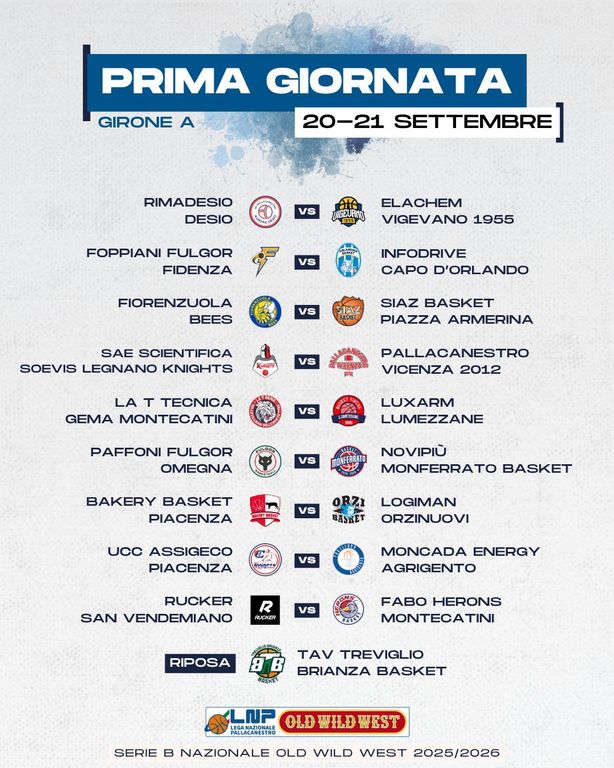La Lega Nazionale Pallacanestro ha reso nota la prima giornata di campionato di serie B élite. Debutto casalingo al Pala Cipir per la Paffoni che sfiderà nel derby piemontese Casale Monferrato. Domani alle 12 il calendario completo.