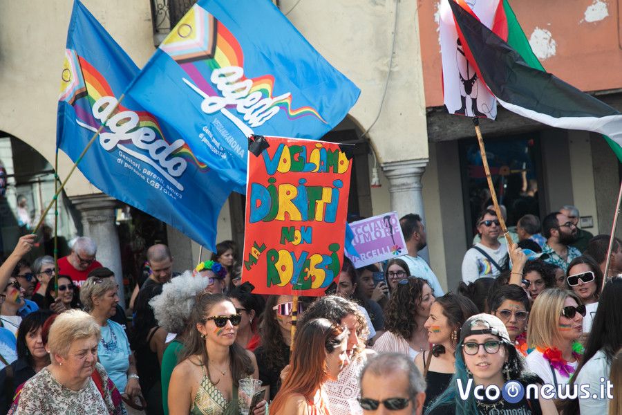 Un corteo pacifico, colorato, chiassoso e rispettoso. Il primo Vco Pride, accompagnato da tante polemiche politiche e da quelle legate alla viabilità, ha avuto una buona adesione. Circa settecento i partecipanti che, puntuali come un orologio svizzero, sono partiti alle 16.00 in punto dalla zona dei giardini pubblici di Omegna per attraversare la città. Tutto si è svolto senza eccessi e senza problemi, tra canti, bandiere arcobaleno e della pace, qualcuna di partito e del sindacato oltre che della Palestina. Le note di alcune canzoni dell’orgoglio pride a fare da sottofondo, tra sguardi curiosi della gente a bordo strada, anche per il clamore che ha accompagnato la manifestazione. Il rosa il colore predominante, indossato con orgoglio: in prima fila al corteo l’assessore alla cultura del comune di Omegna Mimma Moscatiello.