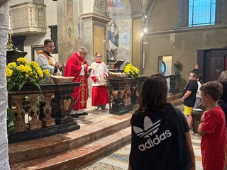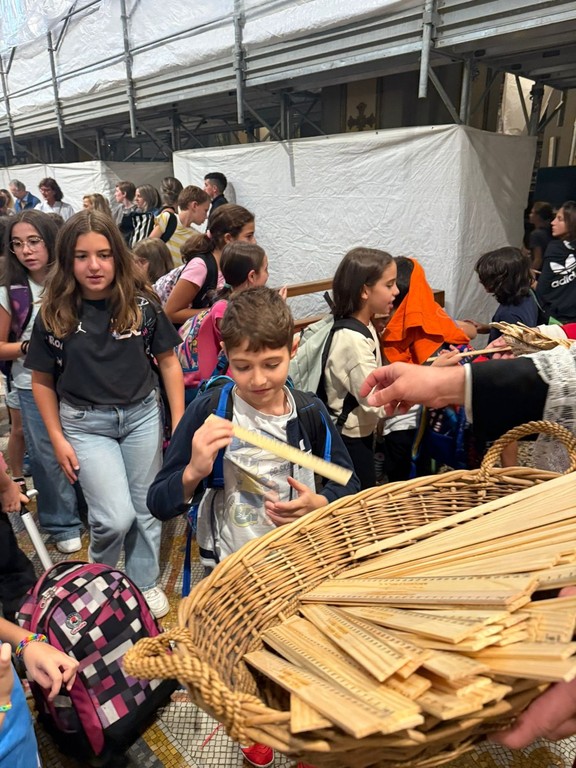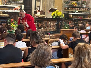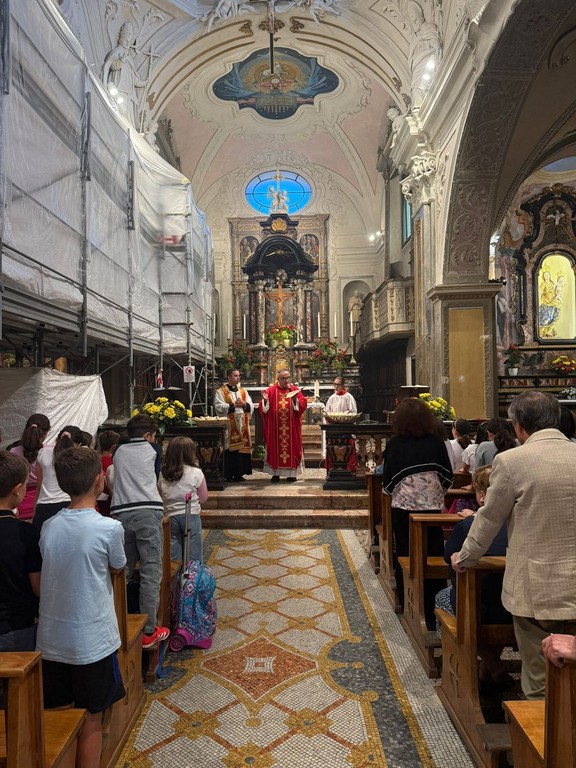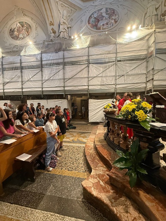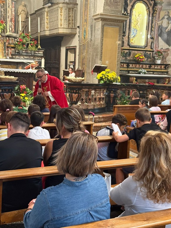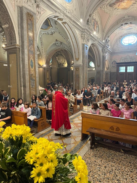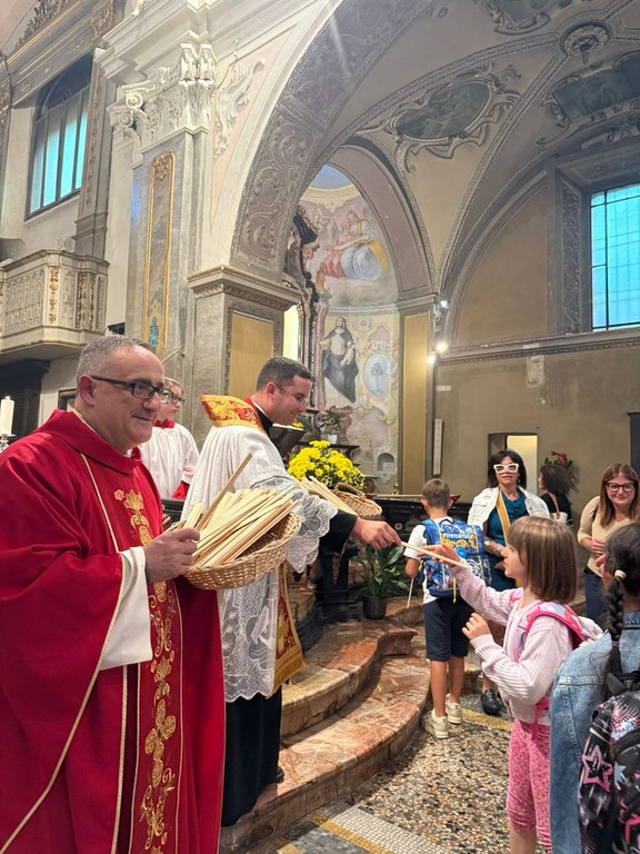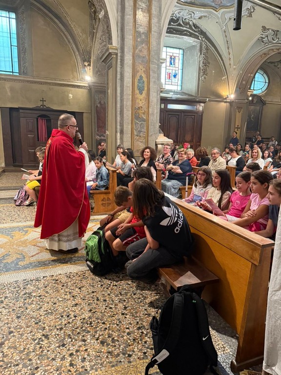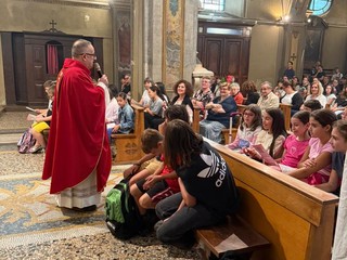 E' diventato un appuntamento classico, fortemente voluto da Don Gianmario Lanfranchini e don Luca Longo. La benedizione degli zainetti e del loro contenuto in collegiata Sant'Ambrogio. Ieri la partecipazione è stata notevole, con più di settanta bambini delle materne, delle elementari e delle medie presenti alla santa messa.