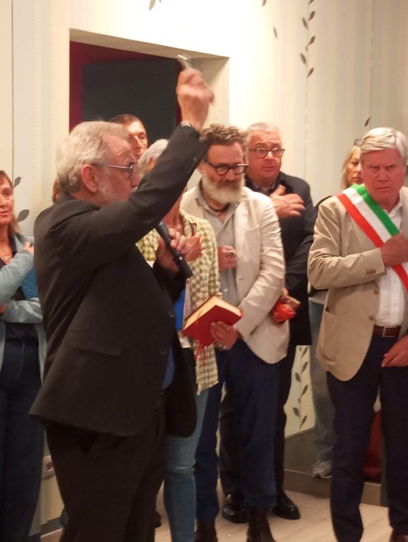Niente taglio del nastro ma la benedizione di monsignor Fausto Cossalter, vicario generale della diocesi e parroco di San Vittore.