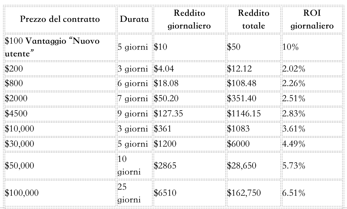 Contratti Trasparenti: Tutti i contratti sono mostrati pubblicamente, con rendimenti chiaramente visibili.