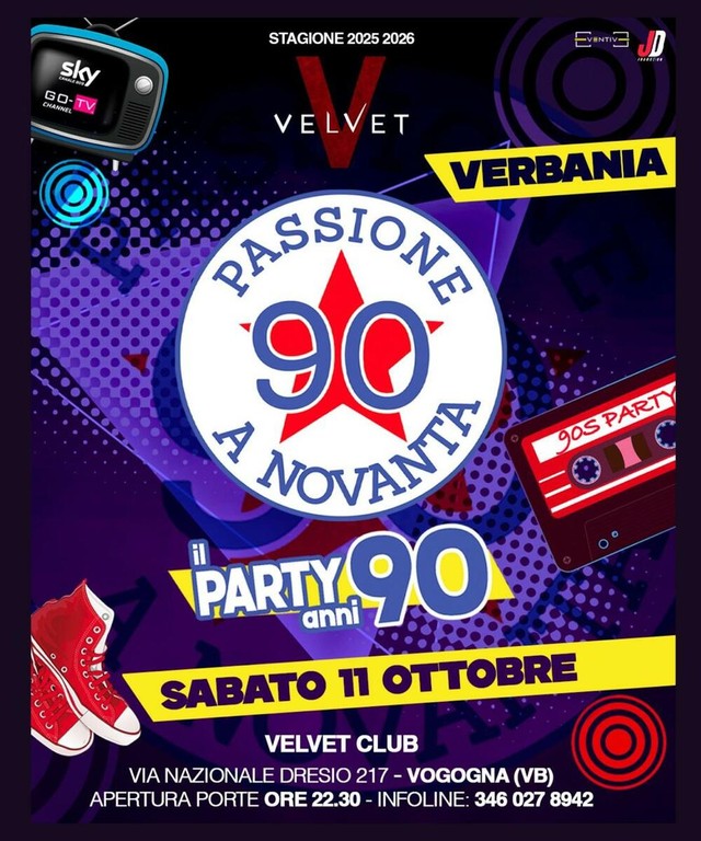 La notte del Velvet Club si prepara a trasformarsi in un viaggio nei ricordi degli anni Novanta. Sabato 11 ottobre è in programma la serata “Passione a 90”, un evento interamente dedicato ai brani che hanno segnato un decennio tra pop, dance e hip hop.