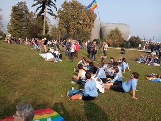 Poi si è formato un corteo, lungo poco meno di un chilometro, fino al parco della biblioteca civica, dove la manifestazione si è conclusa con un benvenuto in musica dei ragazzi del coro San Martino. L’assessore Paretti, nel salutare i partecipanti, ha lodato la “bella iniziativa, che come Amministrazione accogliamo volentieri. La comunità internazionale non può tollerare quello che sta accadendo in Palestina: la Pace va tutelata anche con iniziative come questa, e ci impegniamo a sostenere iniziative locali.”