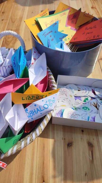 Durante la tappa a Baveno, i ragazzi e le ragazze hanno accolto i passeggeri del battello donando loro barchette di carta contenenti parole e pensieri dedicati alla pace: un gesto semplice ma carico di significato, simbolo della volontà di costruire ponti di gentilezza tra persone e territori.