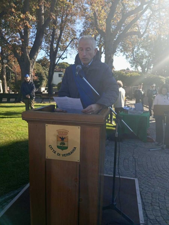 Il vicepresidente della provincia, Gian Maria Minazzi, ha parlato del Monumento ai caduti di Paolo Troubetzkoy, davanti al quale s’è svolta la cerimonia: “Lancia un messaggio semplice e potente, non raffigura soldati in armi ma una vedova e un orfano di guerra, un monito a farci ancora oggi costruttori di pace”.