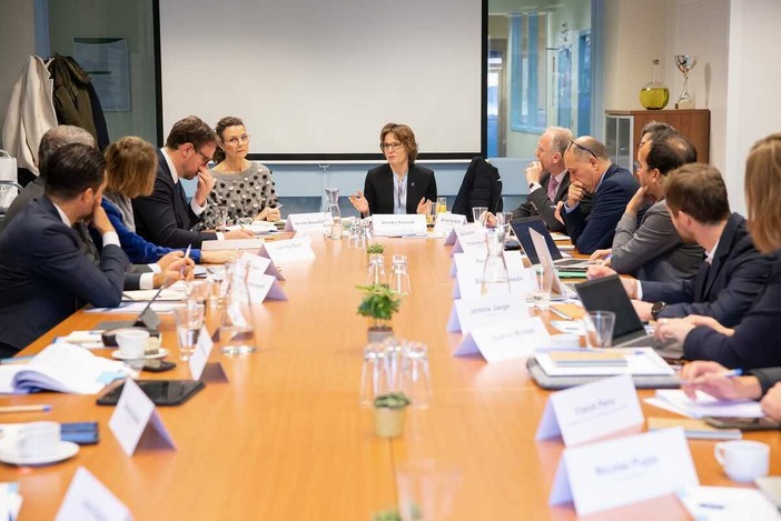Il secondo giorno, l’amministratore delegato Daniele Barbone ha partecipato all’incontro organizzato dal consiglio di amministrazione di Aqua Publica Europea (Ape), che è l'associazione europea dei gestori idrici pubblici, con la commissaria europea per l’ambiente, la resilienza odrica e un’economia circolare competitiva, Jessika Roswall, accompagnata dal suo gabinetto. Un momento chiave per discutere le priorità della nuova atrategia europea per la resilienza idrica (Eers) e promuovere il contributo italiano alle politiche comunitarie del settore.