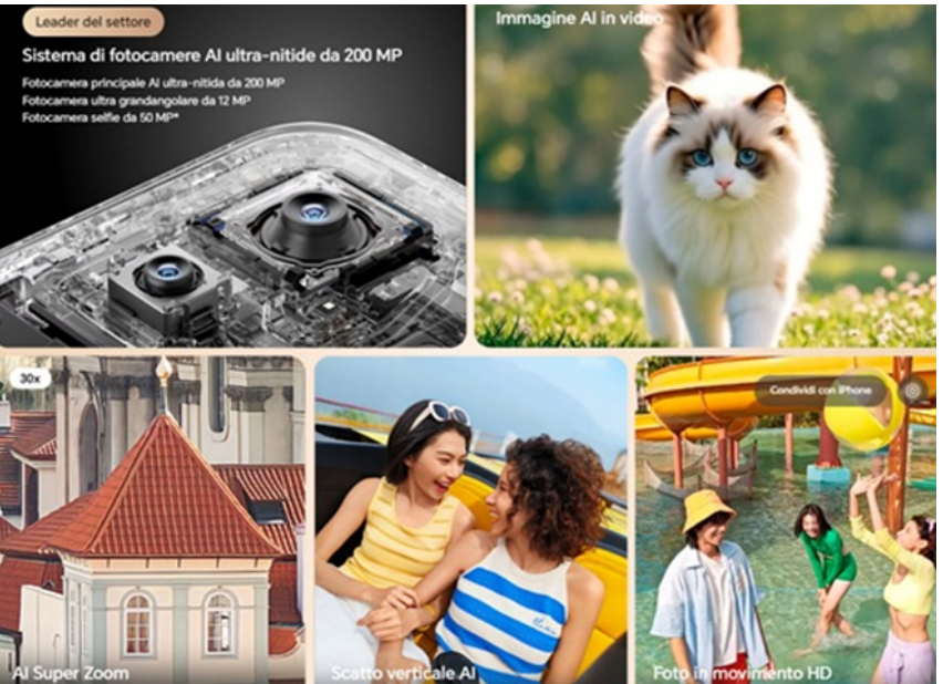 Le modalità di scatto integrate, come Super Zoom AI, Simulazione Pellicola e Foto in Movimento, permettono di passare dal ritratto artistico al video dinamico con un solo tocco. L’intelligenza artificiale riconosce automaticamente il tipo di scena e ottimizza le impostazioni. La fotocamera frontale da 50 MP, con risoluzione 4K, assicura selfie e videochiamate nitidi e realistici, con la possibilità di usare lo sblocco facciale 2D per un accesso rapido e sicuro.