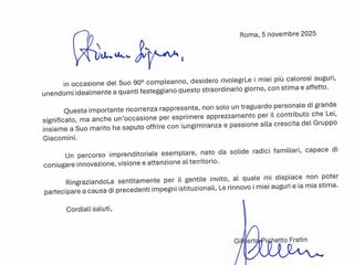 Domenica non si è celebrato solo il 90º compleanno di una donna, ma anche e soprattutto i 75 anni di vita passati nella sua azienda insieme alle sue maestranze, che lei ha sempre considerato “la sua famiglia”. Col passare degli anni la Giacomini è divenuta simbolo dell’eccellenza, della tradizione e dell’innovazione italiana.