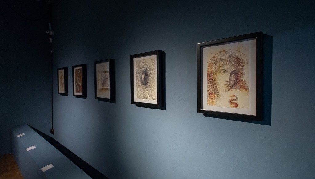 L’esposizione prosegue poi attraverso il mantra inedito in due sezioni e una selezione particolarmente raffinata di disegni, in cui Galliani alterna simboli di vita e morte – fiori, scarpe, anelli, teschi – a intensi volti aureolati. Sono i “Nuovi Santi”, figure sospese tra quotidianità e trascendenza, in cui l’artista suggerisce l’idea di una sacralità diffusa, accessibile e universale.