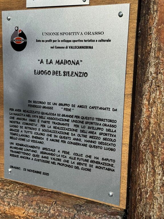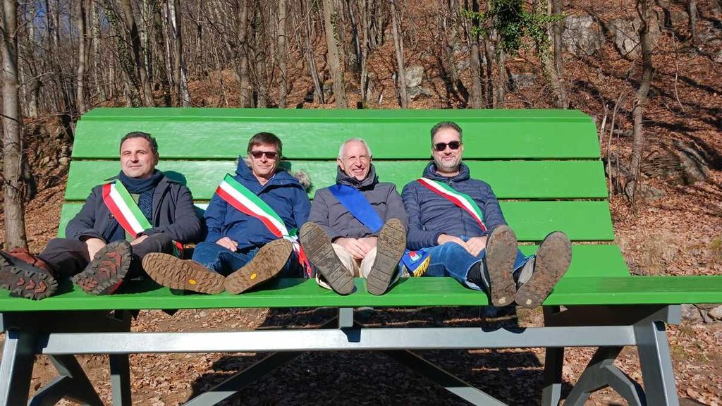 È stata inaugurata questa mattina a Orasso la panchina gigante. L’unione sportiva, promotrice dell’iniziativa, l’ha collocata sul terrazzamento sopra l’Oratorio del Sasso. Autorità e cittadini dei comuni di Cannobio e dalla valle si sono dati appuntamento alle 10.00. Prima dello scoprimento, l'intervento delle autorità. Luigi Spadone, sindaco del comune di Valle Cannobina, ha ringraziato la comunitá di Orasso, sempre laboriosa e impegnata per la propria frazione e per la sua promozione. A seguire l'intervento di Gianmaria Minazzi, sindaco di Cannobio e vicepresidente della provincia del Vco, Mauro Cavalli, vicesindaco di Cannobio, e Daniel Bergamaschi in rappresentanza del comune di Gurro. Poi la foto delle autorità sulla panchina e l’aperitivo offerto dall’Unione sportiva Orasso.