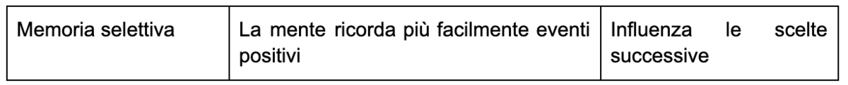 Memorizzazione selettiva: i risultati positivi restano più impressi di quelli negativi.