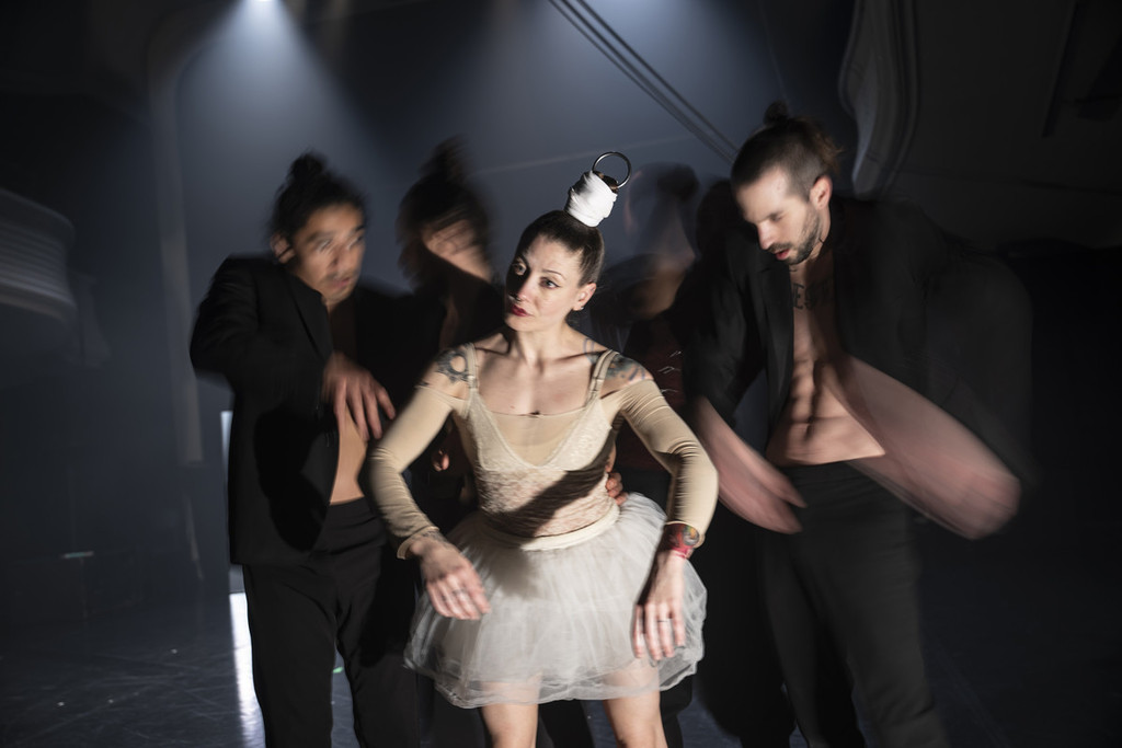 La coreografia mescola danza classica e contemporanea, contorsione, sospensione capillare e un continuo dialogo tra corpo, oggetti, suoni e immagini. Le musiche, firmate insieme alla musicista Bea Zanin, partono da Delibes ma si intrecciano con elettronica e violoncello, creando atmosfere sospese tra tradizione e modernità.