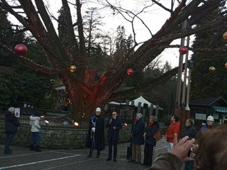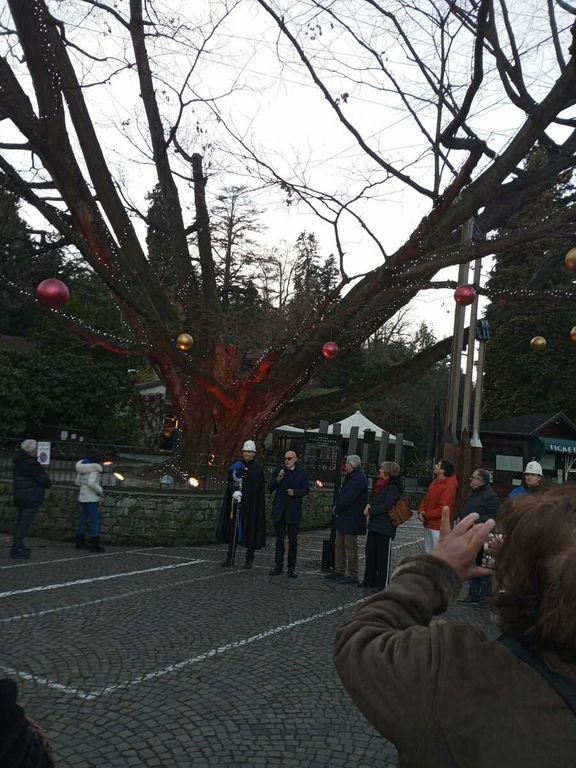 Nel pomeriggio si è “accesa” anche la quercia monumentale all’ingresso di Villa Taranto. Un gesto simbolico che, come spiegato dal direttore Andrea Cottini, rappresenta l’omaggio dei Giardini alla città e un contributo alla cornice natalizia. A porgere il saluto istituzionale sono stati il sindaco Giandomenico Albertella, anche presidente dell’ente, e il consigliere delegato alle Politiche giovanili Alesso Baldi.