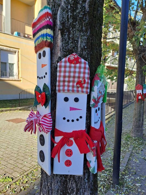 La prima creazione, già visibile, sono i bellissimi alberi di Natale realizzati con più di 3000 mattonelle di lana e posizionati in piazza delle scuole elementari, sul sagrato della Chiesa, nel cortile della biblioteca, in crociera e in alcune aiuole. La responsabile di questo progetto è Sabrina Pironi. Nei prossimi giorni invece verrà addobbato il comune internamente ed esternamente con la regia di Giancarla Battaglia, mentre a realizzare pupazzi e renne in legno è stato il gruppo coordinato da Marisa Di Gianni.