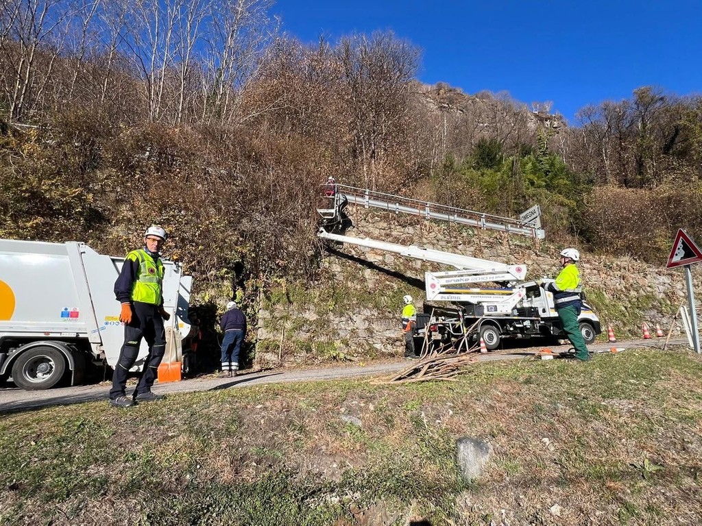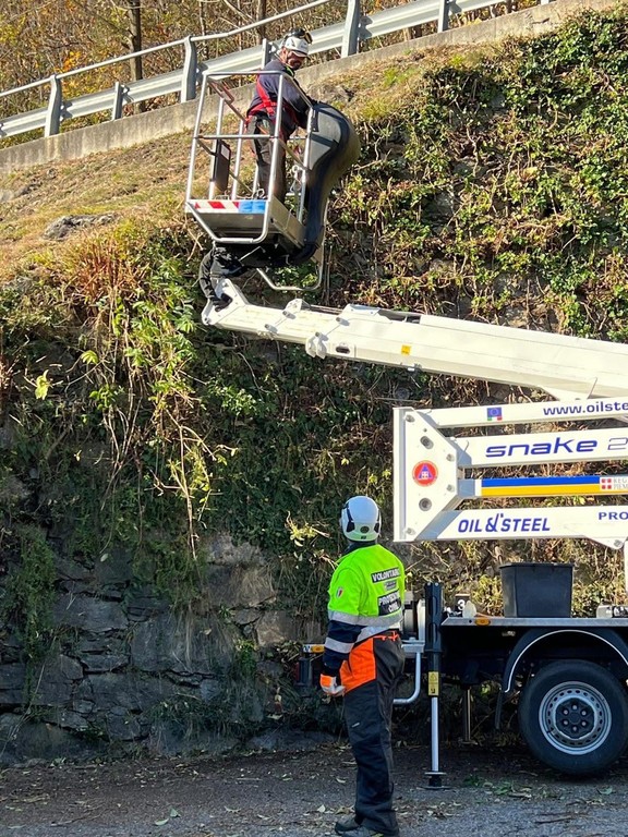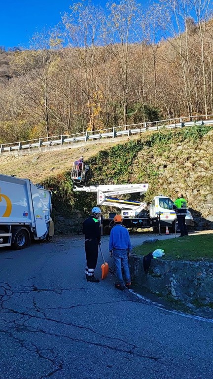 In particolare, sono state tagliate diverse piante che ricadevano pericolose sopra alla carreggiata nel tratto che va dal Circolo al primo tornante; così come sono state tagliate piante, rovi ed erbacce dal primo al secondo tornante, lungo tutto l’imponente muro di sostegno della strada. Qui, grazie al cestello mobile e a un operatore abilitato all’uso, è stato possibile fare un intervento importante, che permette una migliore visibilità lungo l’intero tratto, oltre a salvaguardare la tenuta dello stesso manufatto
