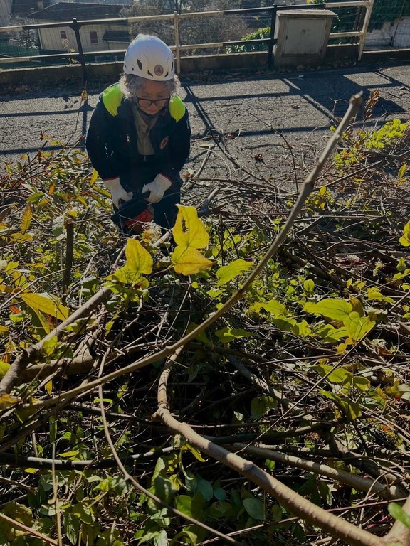 I volontari della Protezione Civile del Coordinamento Provinciale e dei gruppi di Omegna e delle Quarne protagonisti di un intervento di pulizia straordinaria della strada comunale che poi diventa provinciale 51 e che da Cireggio sale verso il paese della musica.