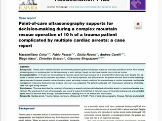 Il gruppo regionale sanitari del Soccorso Alpino e Speleologico Piemontese ha recentemente pubblicato un articolo su una prestigiosa pubblicazione scientifica internazionale a proposito di un intervento di soccorso effettuato in Valchiusella (TO) il 5 ottobre 2022. In quell'occasione, durante un'operazione notturna di elevata complessità tecnica durata oltre 12 ore, fu salvata la vita a un escursionista che nel corso del trasferimento in barella verso valle subì complessivamente 4 arresti cardiaci prontamente risolti dal personale sanitario presente, grazie a un grande affiatamento con i soccorritori tecnici e all'utilizzo di strumentazioni e manovre all'avanguardia. I sanitari volontari che sono intervenuti in quell'occasione hanno voluto dare ulteriore valore all'intervento mettendo a disposizione della comunità scientifica le conoscenze e le esperienze impiegate e apprese durante l'operazione. L'accettazione del paper da parte di una pubblicazione scientifica internazionale fornisce ulteriore prestigio al lavoro svolto.