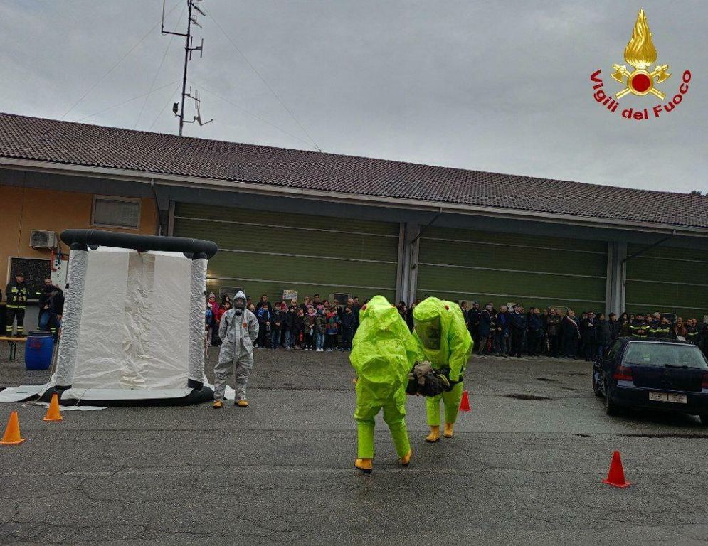 Un saggio delle professionalità dei vigili del fuoco nel gestire un rilascio chimico di sostanza tossica e la calata della bandiera italiana dal castello di manovra con tecniche di derivazione speleo-alpino-fluviali alla presenza delle autorità hanno concluso la mattinata.