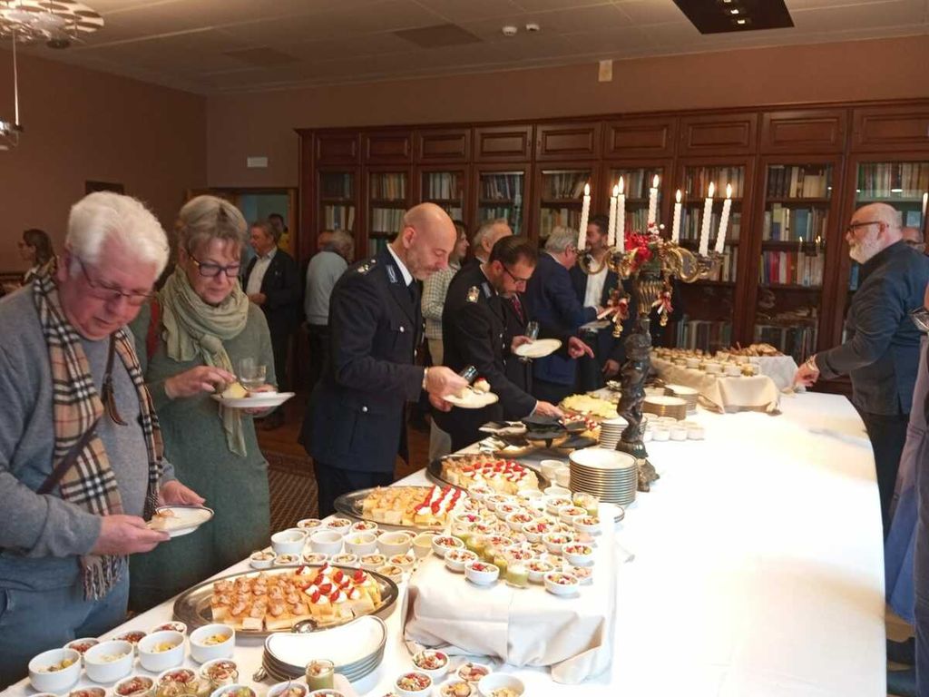 Prima del brindisi, il prefetto Pirrera ha ceduto la parola a monsignor Fausto Cossalter, parroco di Intra e vicario generale del vescovo monsignor Franco Giulio Brambilla. Nel porgere gli auguri anche a nome del vescovo, monsignor Cossalter ha proposto una riflessione sul Natale cristiano, richiamando le donne e gli uomini di buona volontà a un impegno condiviso.