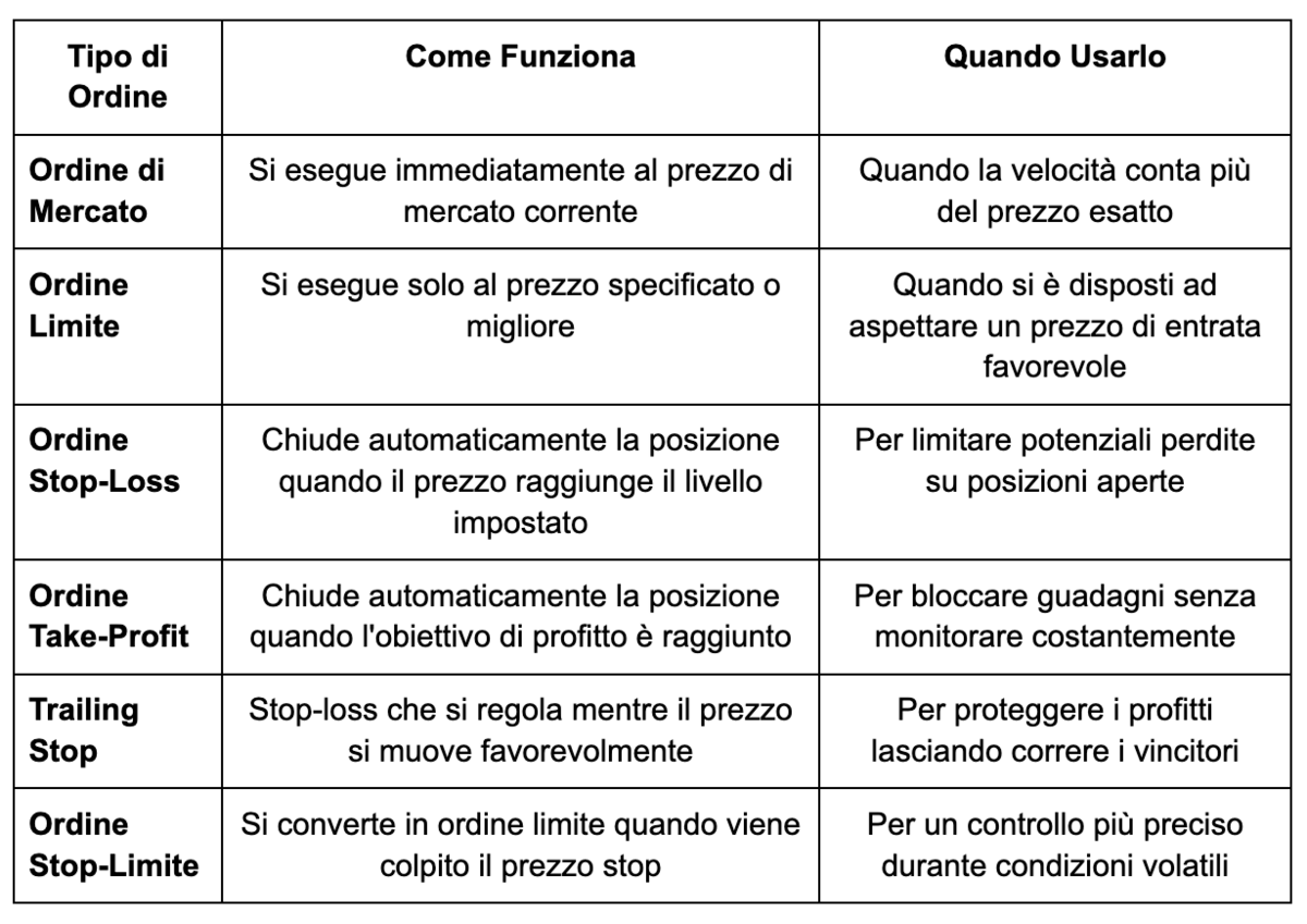 Tipi di Ordini e Opzioni di Esecuzione