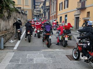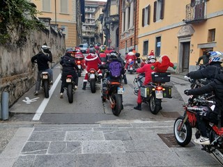 Una sfilata decisamente speciale ha animato oggi le vie di Verbania: più di 60 moto, guidate da altrettanti Babbi Natale, hanno percorso la città partendo da Intra per raggiungere l’ospedale Castelli. Un corteo colorato e rumoroso, che ha attirato l’attenzione e strappato sorrisi lungo tutto il tragitto.