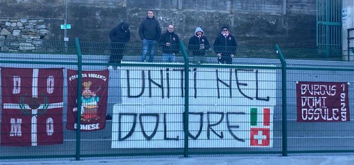 'Uniti nel dolore'. Recitava questa semplice frase lo striscione affisso oggi a Stresa nell'amichevole giocata dalla Juve Domo nella Perla del Lago Maggiore. Uno striscione con le bandiere italiana e svizzera, realizzato dai tifosi dell'Ossola Kaos della Juve Domo, in memoria delle vittime e dei feriti della strage di capodanno di Crans Montana. Gli ultras granata ancora una volta hanno dato dimostrazione di attenzione alle disgrazie che toccano non solo il nostro territorio, come già accaduto in passato in diverse occasioni.